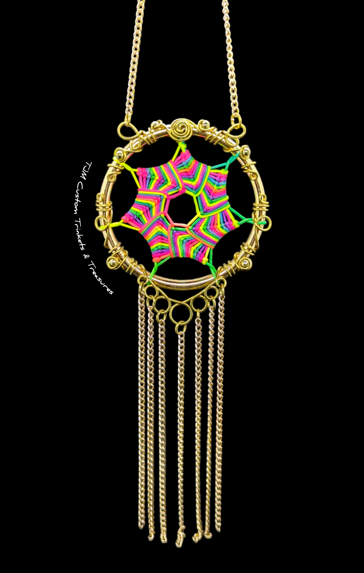 Wire wrapped in brass and woven in neon, 3 inch hoop